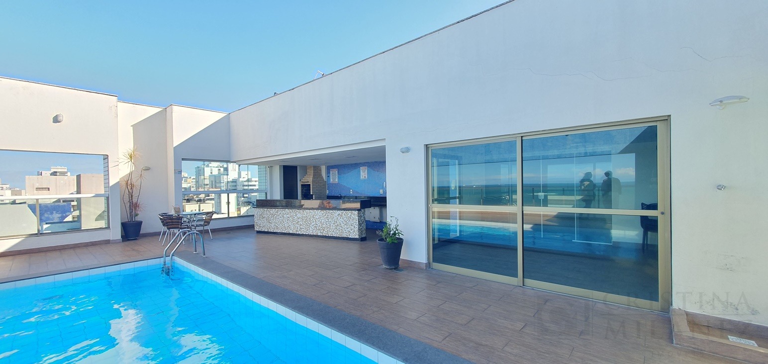 O condomínio oferece acessibilidade, piscina com vista para o mar, churrasqueira, salão de festas, sauna, gás encanado, portaria 24h, portão eletrônico, zeladora e elevadores.