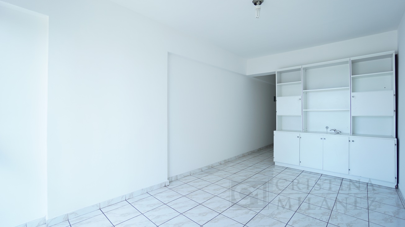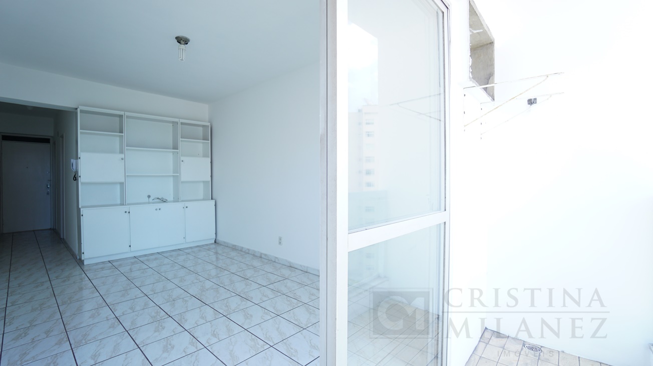 O apartamento de frente, sol da manhã, tipo quitinete possui sala-quarto, varanda, banheiro e cozinha.