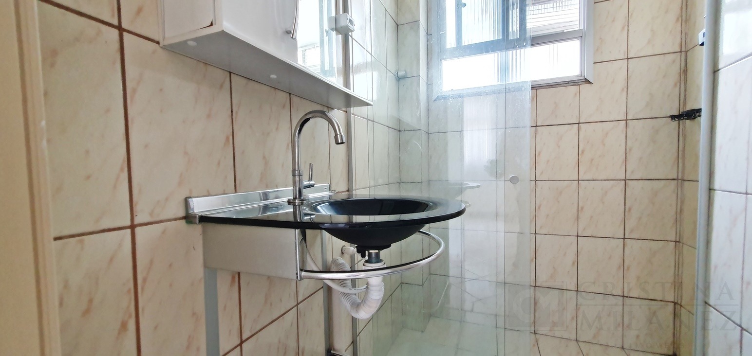 O apartamento de frente no 2° andar, sol da manhã, possui 2 quartos, sala de estar e jantar, banheiro social, cozinha e área de serviço.