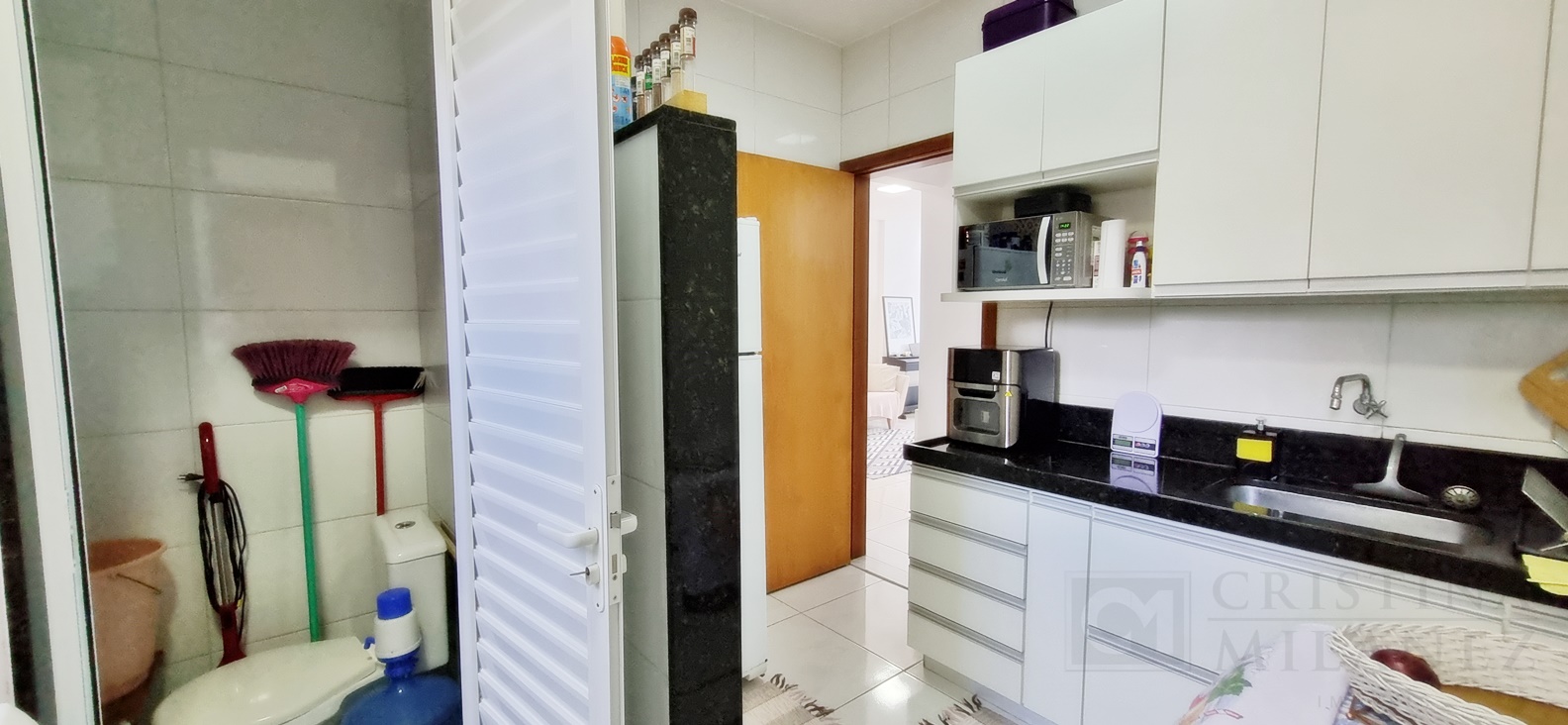 O apartamento de frente, sol da tarde, possui 3 quartos sendo 1 quarto reversível, sala de estar e jantar, varanda, banheiro social, cozinha, área de serviço e banheiro de serviço.